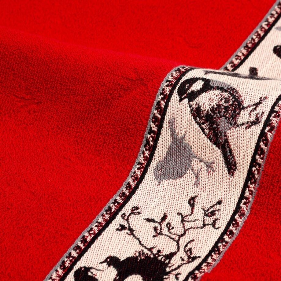 Bunzlau Castle rode keukendoek met vogel print en witte en grijze details.