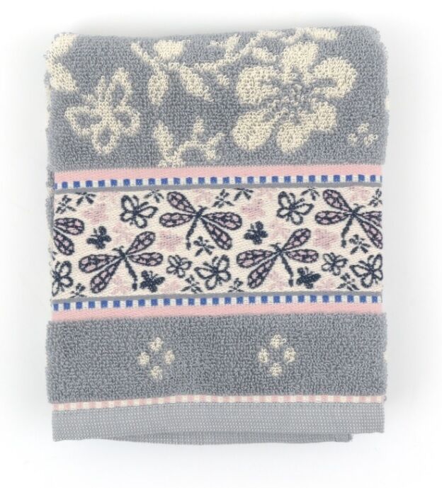 Bunzlau Castle grijze keukendoek met libellenprint en roze details.
