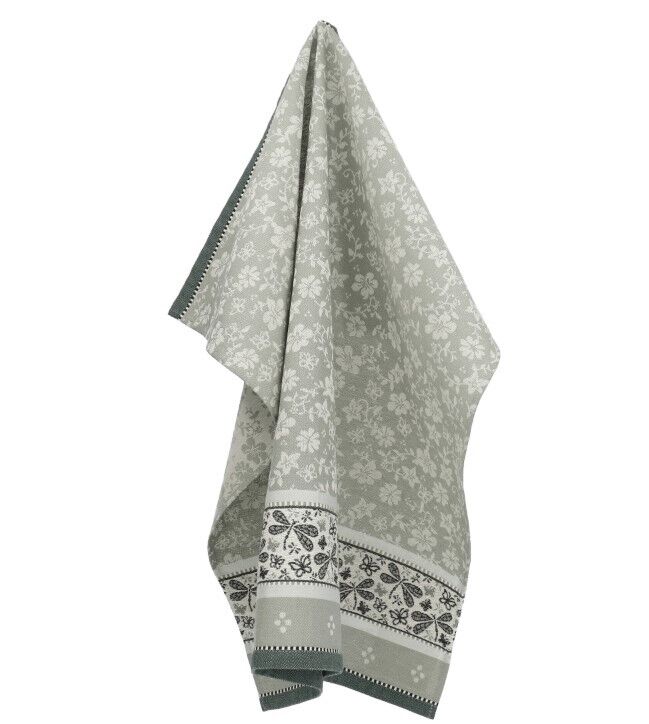 Bunzlau Castle groene theedoek met een libelle in combinatie met bloemen print.