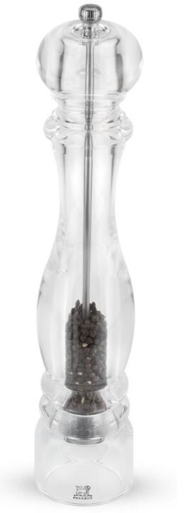 Deze pepermolen 'Nancy' is gemaakt van glanzend transparant acryl. Hierdoor is de inhoud van de molen duidelijk zichtbaar.