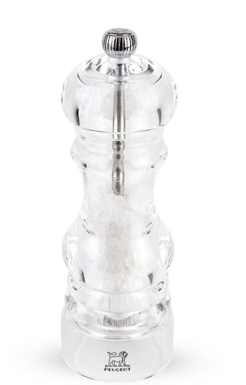 Deze zoutmolen 'Nancy' is gemaakt van glanzend transparant acryl. Hierdoor is de inhoud van de molen duidelijk zichtbaar.