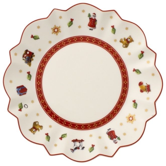 Met de collectie Toy's Delight zorgt u voor een nostalgische kerstsfeer in huis. Het servies is versierd met speelse motieven in rood, groen en wit en roept herinneringen uit de kindertijd op. Om te combineren, verzamelen en cadeau te doen. Het decoratieve bord in rood past perfect bij de kerstbrunch of de koffie 's middags en zorgt voor sfeervolle gezelligheid op tafel. Breng kerstsfeer op tafel.