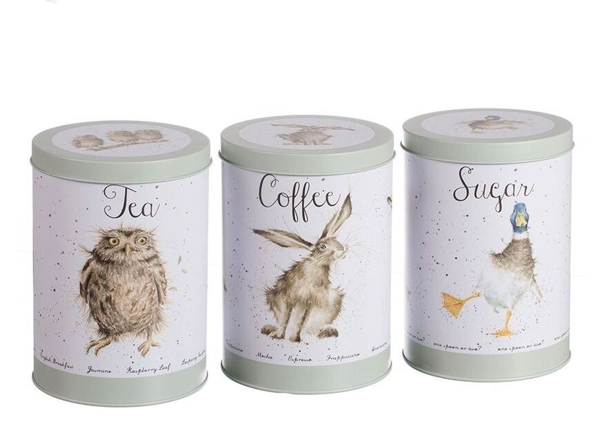 Wrendale designs voorraadblikken set voor koffie, thee en suiker.