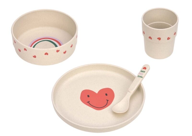 Kinderserviesset (bord - kom - beker - lepel) – Happy Rascals, Hart