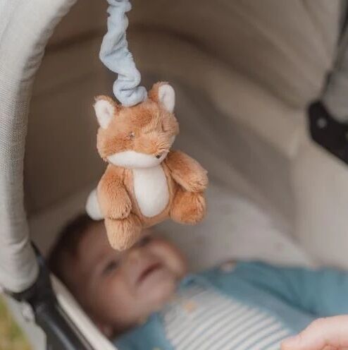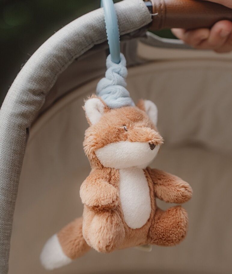 Dankzij de ring kan het vosje makkelijk aan de box, autostoel of kinderwagen bevestigd worden en blijft interessant voor urenlang speelplezier voor thuis of onderweg.