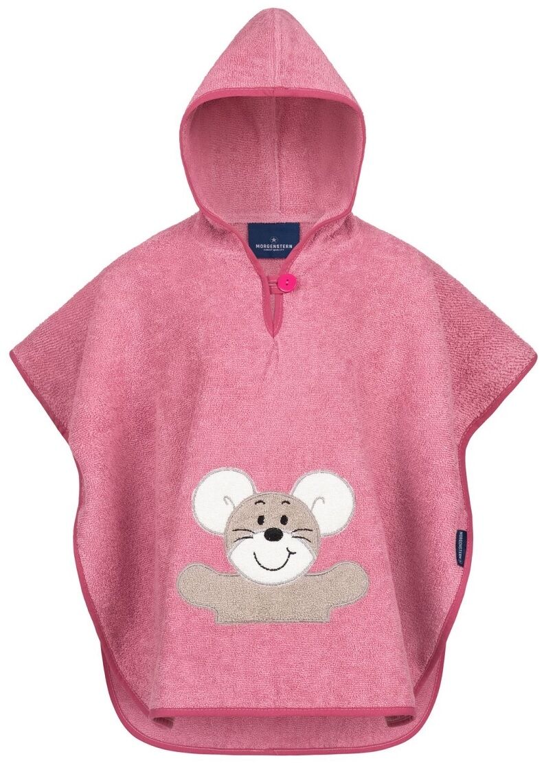 Deze zachte, warm-roze badponcho Maus van Morgenstern, met applicatie van een lief muisje en een ruime capuchon is een prachtig cadeau voor een geboorte of de verjaardag van een kleine peuter.