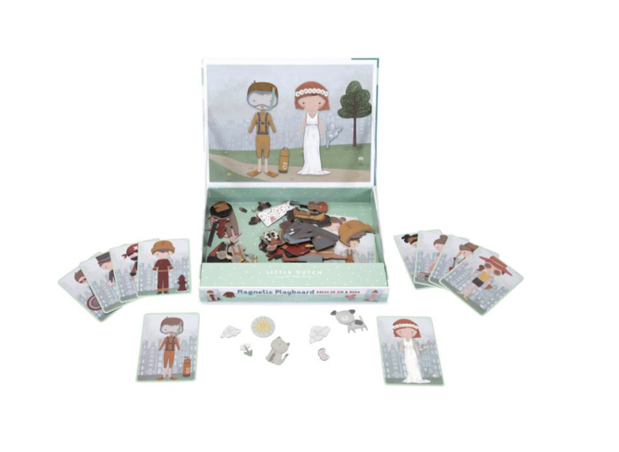Laat je creatieve geest de vrije loop met dit magnetisch speelbord van Little Dutch!  Maak de outfits na zoals op het plaatje of verzin zelf een prachtige combinatie!