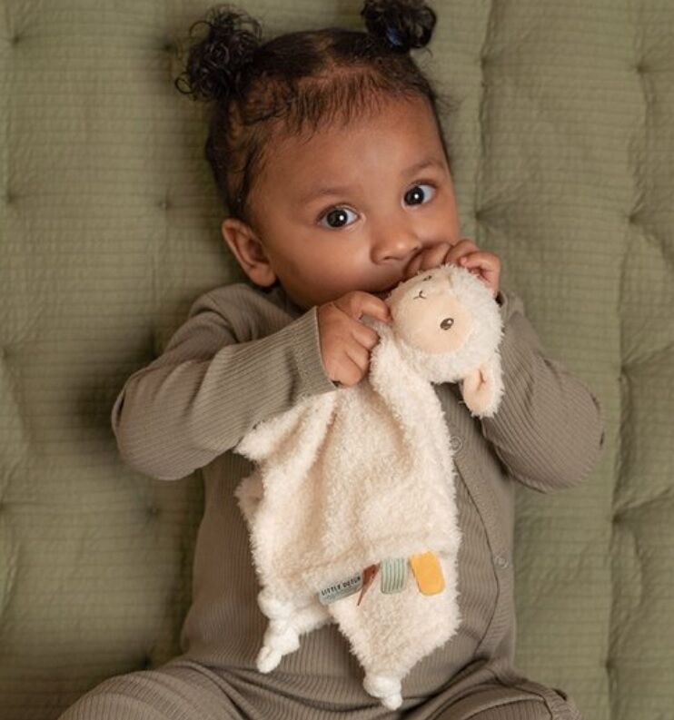 Heerlijk zacht wit schaapje knuffeldoekje van Little Dutch in het Little Farm thema.