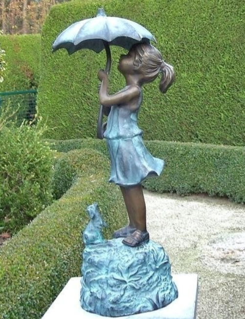Bronzen beeld Groot Meisje onder paraplu