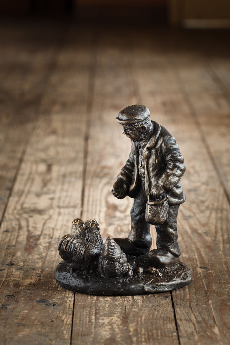 Bronzen beeld - Henk Roosink - Kippen voeren