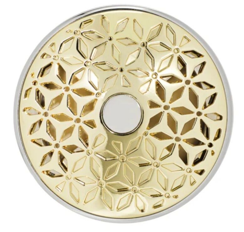 De prachtige auto-diffuser ON/OFF in een goud en zilverkleurig frame Pomelis valt op door zijn tweekleurige design in goud en zilver, met verfijnde stervormige uitsparingen die verwijzen naar de Pomelis collectie. Geïnspireerd op de pomander brengt hij een feestelijke sfeer en past hij harmonieus in elk interieur.