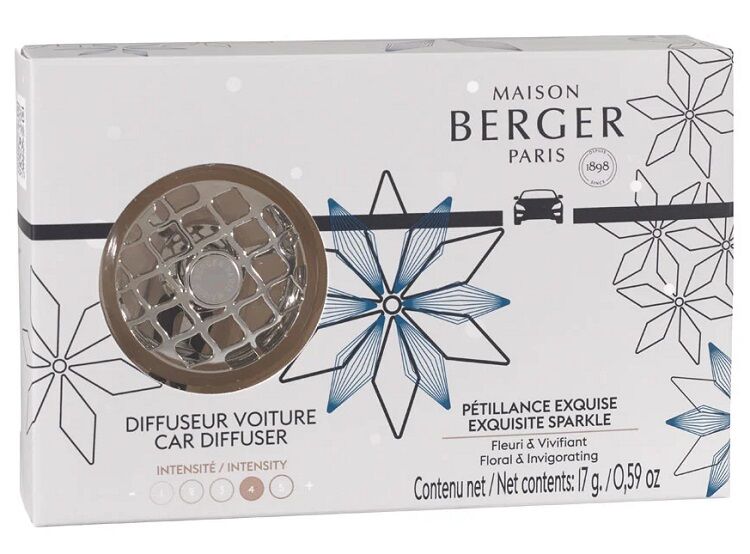 Autodiffuser Bolero van Maison Berger Paris, inclusief 1 vulling Exquisite Sparkle in de verpakking.