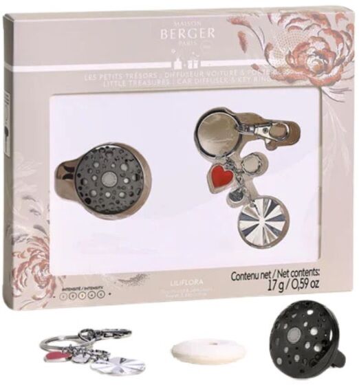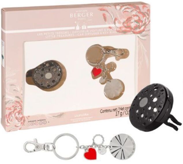 Maison Berger Paris DUO Ophelia Sleutelhanger & Autodiffuser Zilver/Gun metal, inclusief 1 autoparfum-vulling in cadeauverpakking