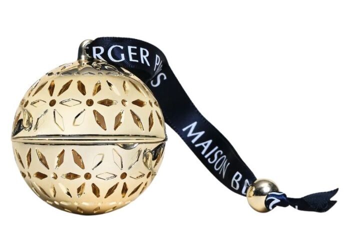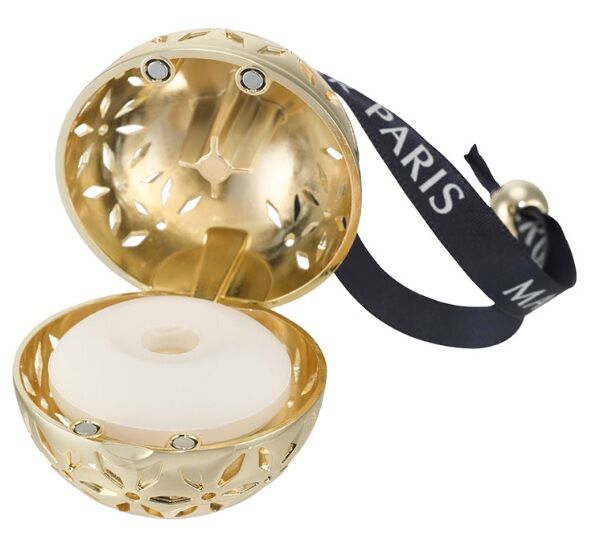 Maison Berger Pomelis mini geurstokjes flacon is een mooi rond model van nude gelakt glas, met een goudkleurige ronde sierring en een pomander... een mooie goudkleurige parfum-medaillon, voorzien van een geparfumeerd keramiek, in geschenkverpakking.