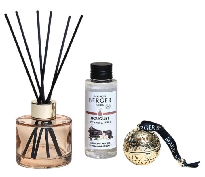 Voor de geurverspreider is 100 ml. huisparfum Splendeur Vanillée bijgevoegd, Bourbon Vanille is een ware natuurkracht, als verleidelijke storm... Het warme intense spoor van rum en patchouli-accenten wordt gecontrasteerd door frisse citrusnoten en onderstreept met een dichtere noot van cacao.