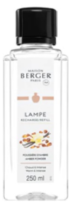 • LET OP: , Deze tijdelijk toegevoegde huisparfum Maison Berger Paris Amber Powder is sensuele geur, welke discreet begint met een licht akkoord van roos en kaneel en dan een hart biedt van amber en patchouli om vervolgens expressie te geven aan een fascinerende grondtoon van vanille en witte musk.