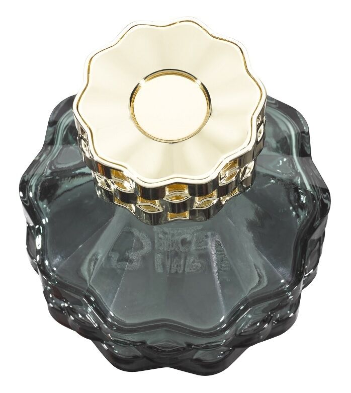 Ultra Trendy en helemaal van nu, deze groen en zwart-kleurige Lampe Berger... Deze lamp heeft een prachtige groen transparante kleur, overlopend naar zwart transparant glas en met een unieke goudkleurige metalen sierdop.