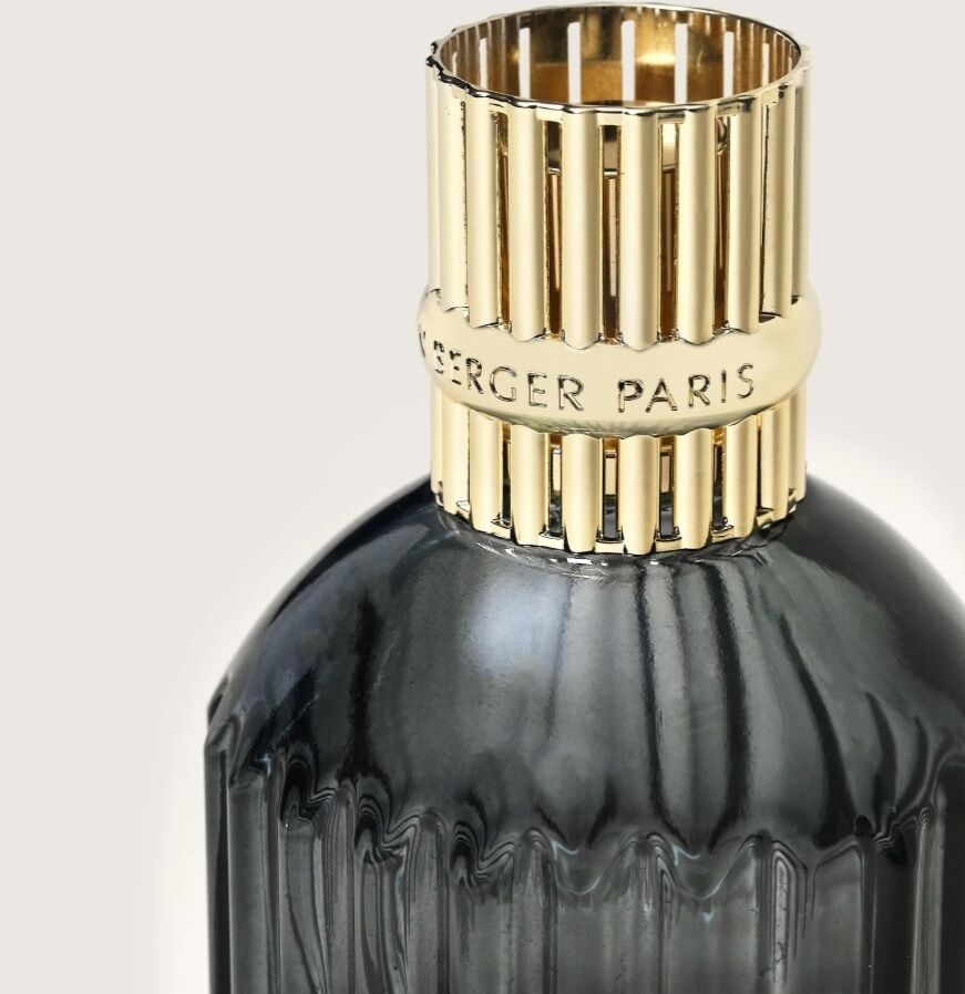- Deze grijs-kleurige Lampe Berger heeft een unieke goudkleurige metalen sierdop.