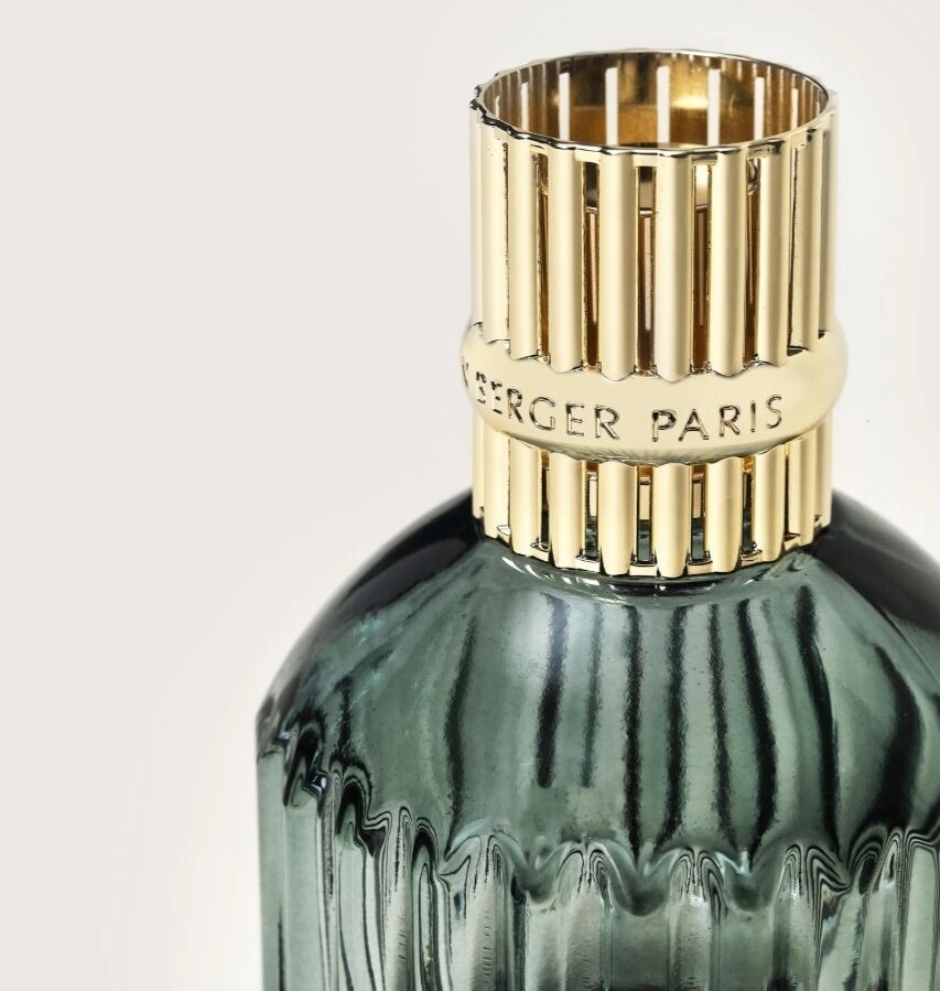 - Deze groen-kleurige Lampe Berger heeft een unieke goudkleurige metalen sierdop.