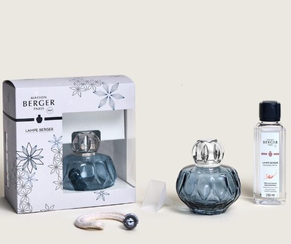 Deze bijzonder gedecoreerde Lampe Berger Rosalie bleue, valt op door zijn origamie geinspireerde ontwerp van Anthony Gambus. De elegante ronde vormen en de gouden sierdop geven de lamp met zijn facetten een eigentijdse uitstraling. Dankzij de zachte grijstint en het eigentijdse design past deze lamp moeiteloos in elk interieur