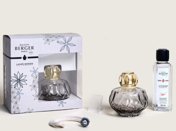 Deze bijzonder gedecoreerde Lampe Berger Rosalie grise, valt op door zijn origamie geinspireerde ontwerp van Anthony Gambus. De elegante ronde vormen en de gouden sierdop geven de lamp met zijn facetten een eigentijdse uitstraling. Dankzij de zachte grijstint en het eigentijdse design past deze lamp moeiteloos in elk interieur