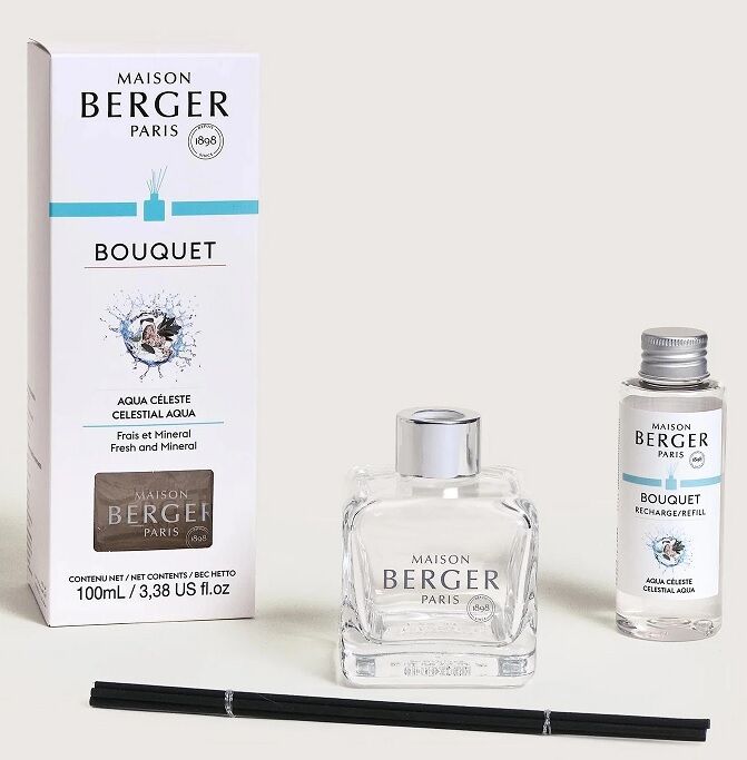 Actie! NU met 200ml navulling Aqua Celeste bij Kubusvormige Parfumverspreider van Maison Berger Paris met 100ml huisparfum Aqua Celeste...