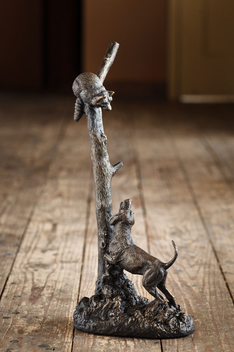 Bronzen beeld - Henk Roosink - Coonhound met wasbeer