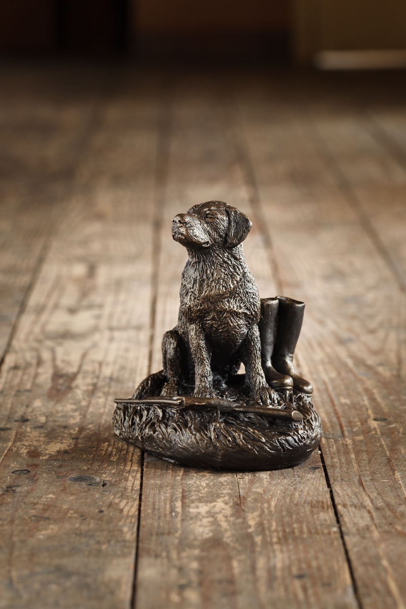 Bronzen beeld - Henk Roosink - Labrador retriever met geweer