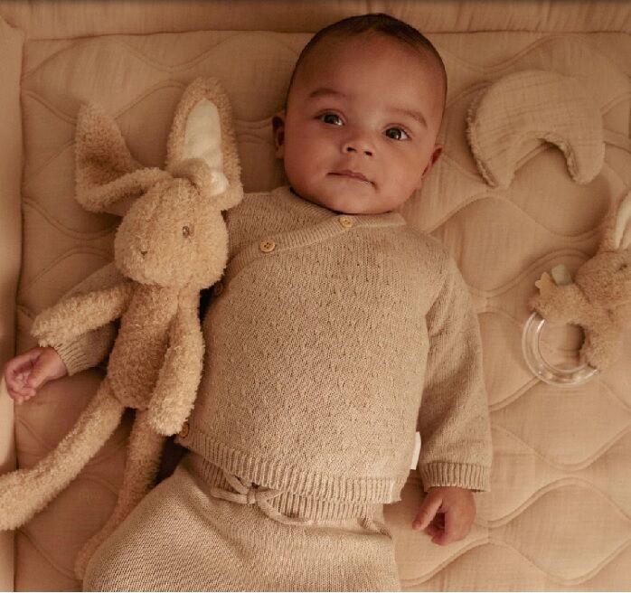 Heerlijk zacht beige knuffelkonijn van Little Dutch in het Baby Bunny thema. Baby Bunny is heerlijk zacht en past perfect in kleine handjes. Zijn lange oren, pluizige vacht en lieve snoetje nodigen uit tot eindeloos knuffelen en troosten.