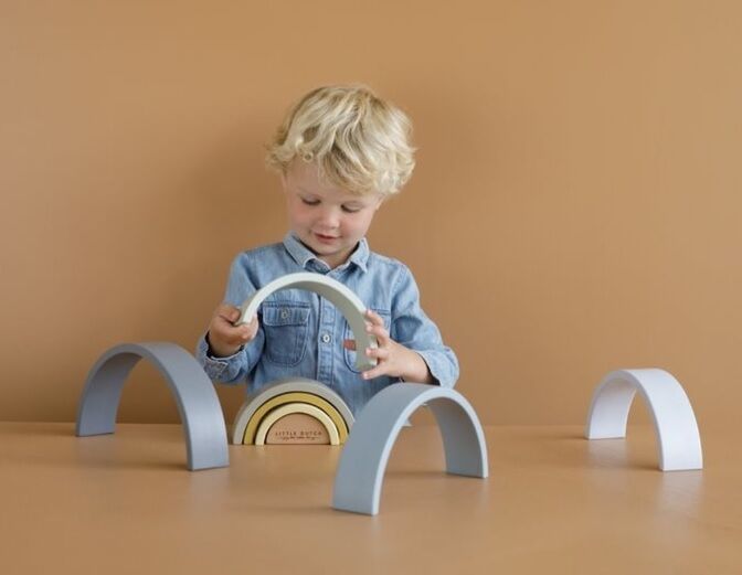 Gebruik deze Little Dutch regenboog niet alleen om de regenboog op of in elkaar te stapelen, voor het maken van een regenboog, maar je kindje kan van deze bogen ook de mooiste creaties maken of een brug te bouwen voor auto's en treinen.