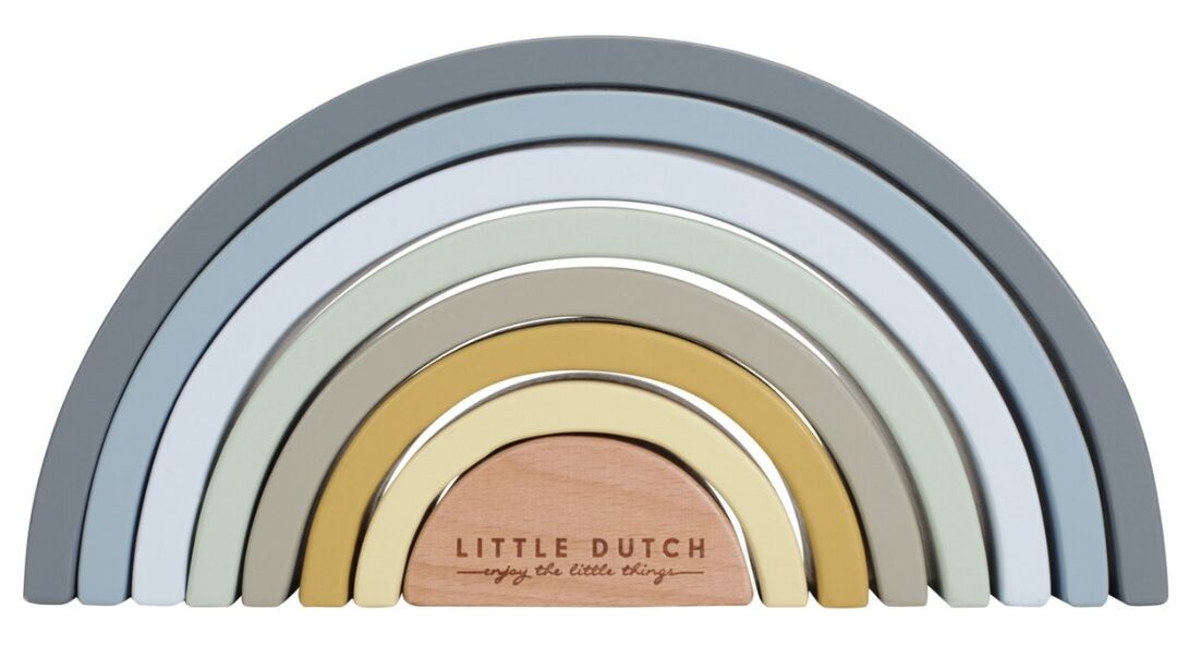 Stapelen, sorteren en bouwen maar met deze gekleurde houten regenboog van Little Dutch. Met deze regenboogstapelaar in 8 bogen met overlopende kleuren van van blauw, groen naar geel, zijn talloze speelmogelijkheden voor en bevordert de fantasie en de fijne motoriek van uw kindje...