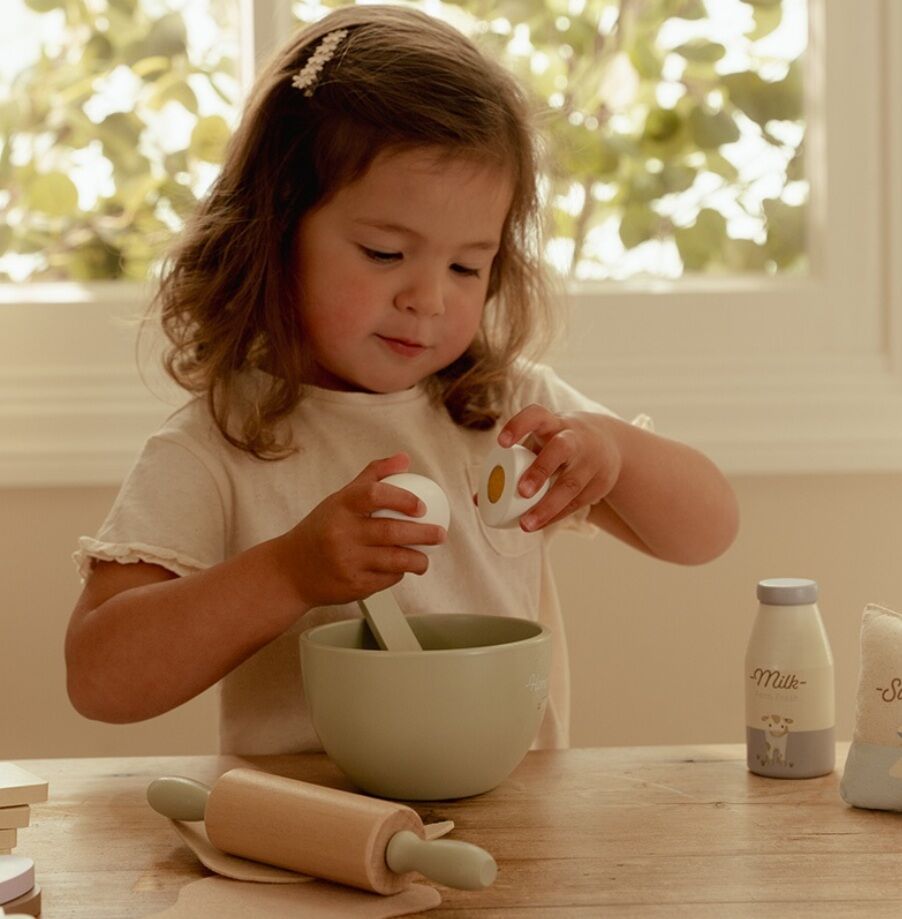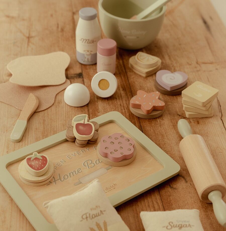 Tijd om iets lekkers te bakken! Met dit prachtige houten bakset van Little Dutch, leert je kindje alles over het bereiden van koekjes en gebak.
