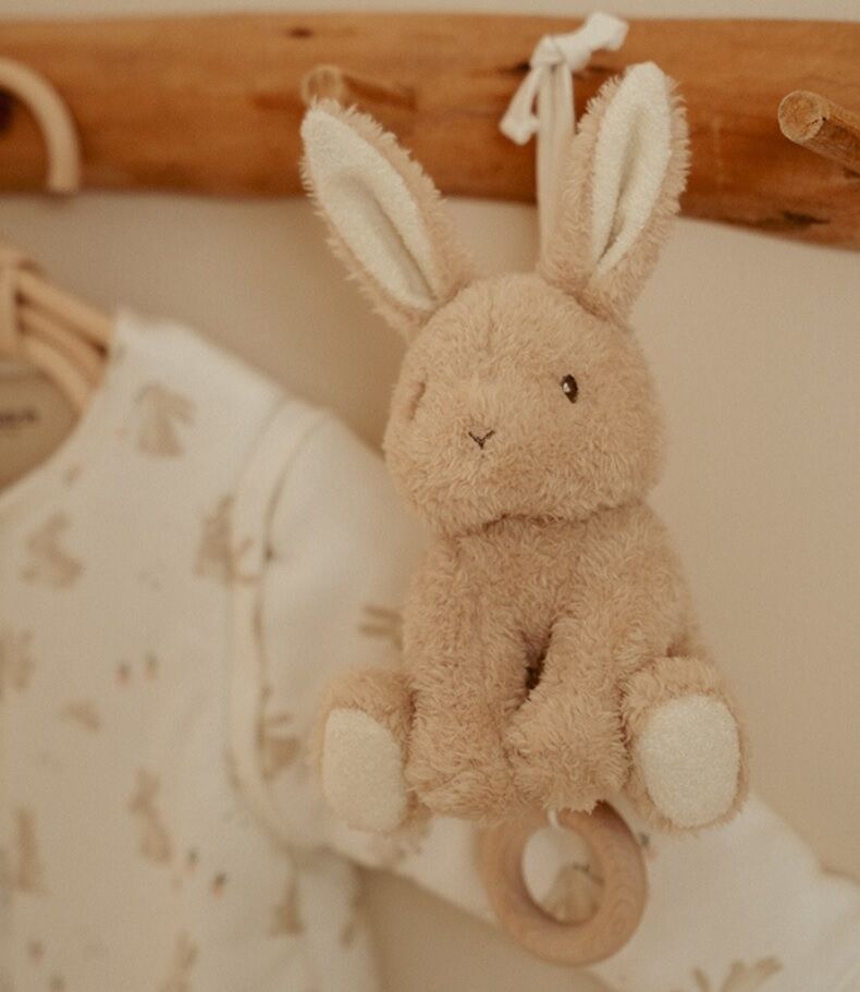 Een lief slaapliedje voor de allerkleinsten... Het Muziekdoosje Baby Bunny speelt een rustgevende melodie die je kleintje helpt ontspannen. Met zijn zachte oortjes en knuffelige vacht is dit konijntje een prachtige toevoeging aan de babykamer.