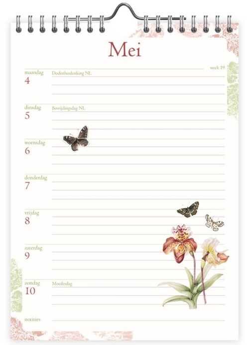 Weeknotitiekalender 2026 Orchidee van Janneke Brinkman met mooie bloemen-illustraties uit de natuur.