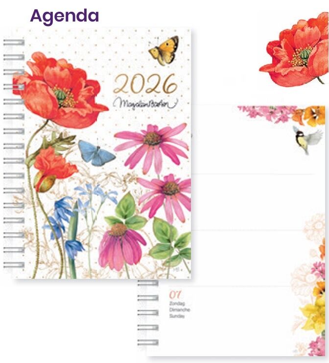 Medium spiraal agenda 2026 van Marjolein Bastin met op de kaft een mooi bloemen decor.