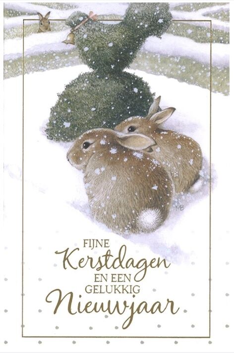 • 1 ontwerp, mooie afbeelding van Konijnen in een sneeuwtuin.