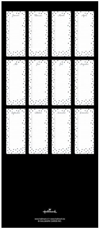 Een leuke zwart-wit verjaardagskalender van Hallmark, voor een overzicht van alle voor u belangrijke verjaardagen om aan de muur te hangen.