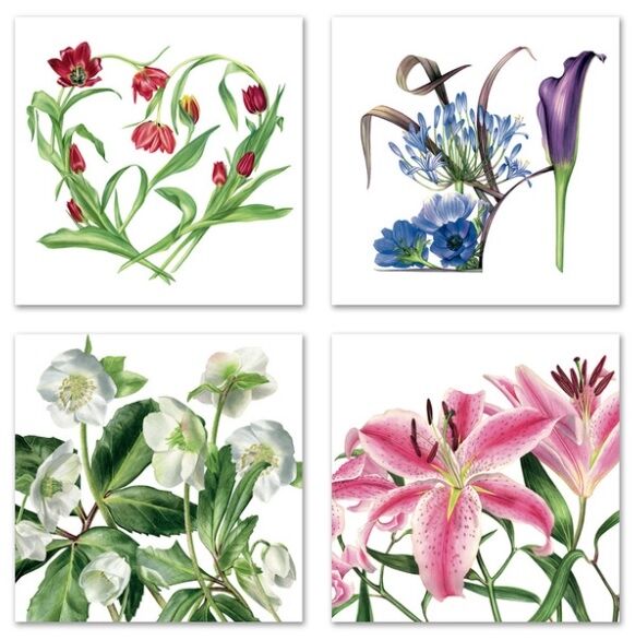 Mapje met 8 schitterende blanco wenskaarten in 4 designs met witte enveloppen.