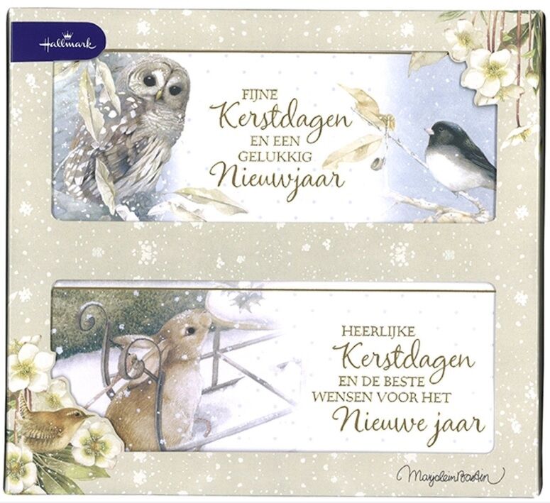 Marjolein Bastin 12 Kerstkaarten 2-Luik uil-konijn