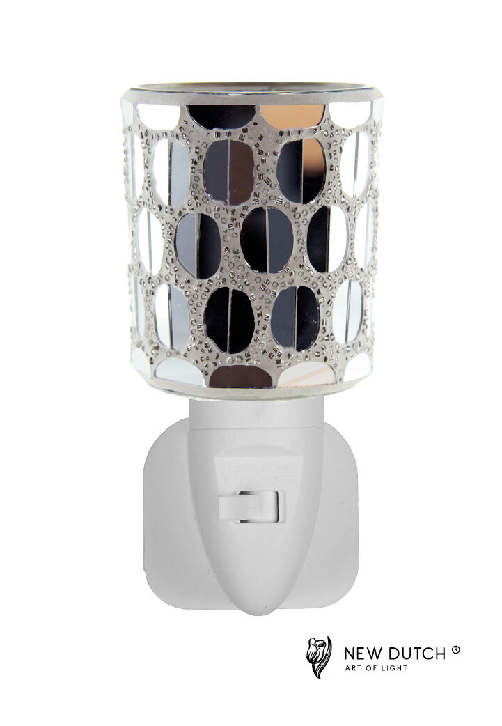 Mooi Mozaïek nightlight silver van mondgeblazen glas. Het kapje is met de hand ingelegd met mozaïekglas.
